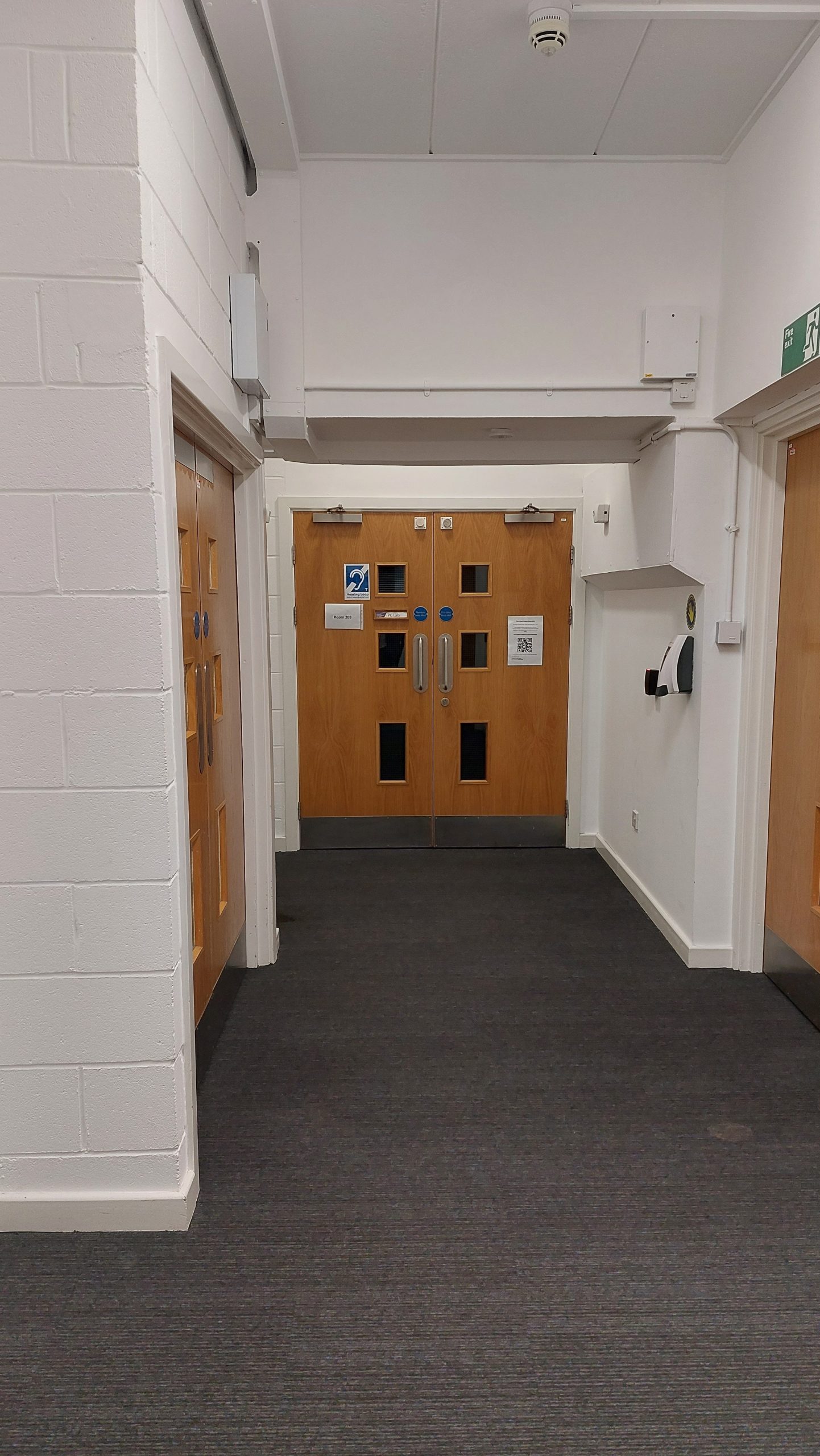 From there I added added so that the bricks on the walls were visible in the piece in areas that aligned with reality and then added other details to the walls such as the card scanner, fire exit sign and slight shadowing on the image.