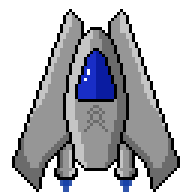 When making the spaceship, I had also referenced another sprite by bevouliin on Dribble. I decided to make it pixel art like my asteroids and made some other changes like removing the guns, adding flames coming from the thrusters, an alien symbol on the sprite’s centre and making the window blue instead of the original red. This reference image can be found here.