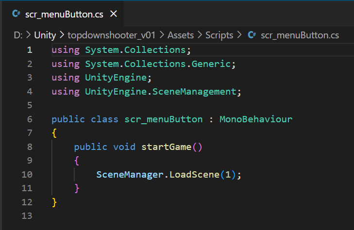 The first script which is the only script used within the Main Menu scene is scr_menuButton.