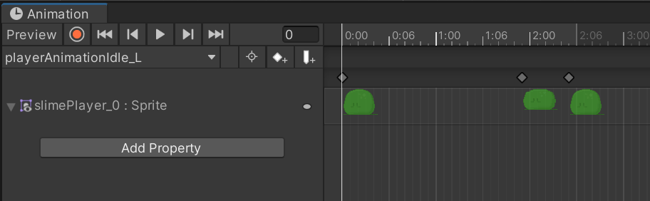 The only animation used by the red and green slime sprites are their idle animation which was set up using Unity’s animation menu.