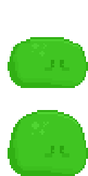The first two are both slimes, one green and one red. The green slime is controlled by the player character and there is only one in within the game at any given time. The red slime was made in Photoshop by changing the colour and reducing the image size so that there are multiple visual differences between the player and the enemies. The red slime sprite unlike the player slime doesn’t have any facial features. This was also used to distinguish the two and to support the idea that the enemies have little to no sentience.