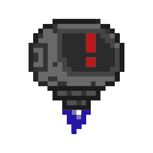 This enemy movement method is using it’s thruster to move towards the player in mid-air. I like this design, though only issue is that an extra frame at the end would make the animation loop better since the exclamation mark on it’s screen ends an begins smoothly and suddenly.