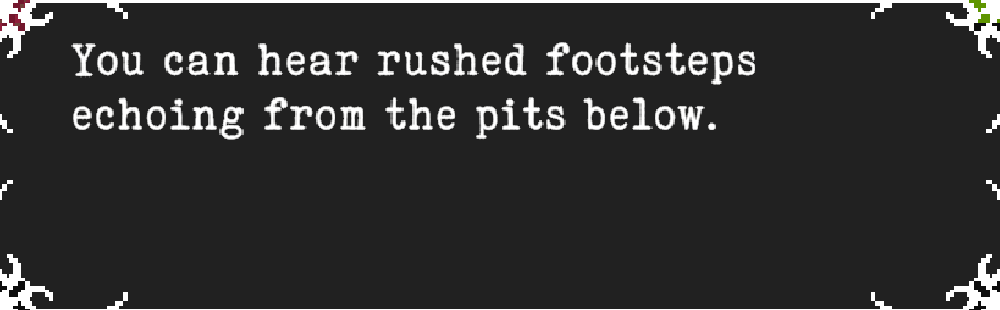 I understood that the holes in the bat room are leaps of faith and may look to be avoided instead of going down into, that’s why I plan for dialogue to appear coming from the first hole to indicate that the fleeing miner went down there before the player caught up, indicating to the player that it’s safe it go down there as well.