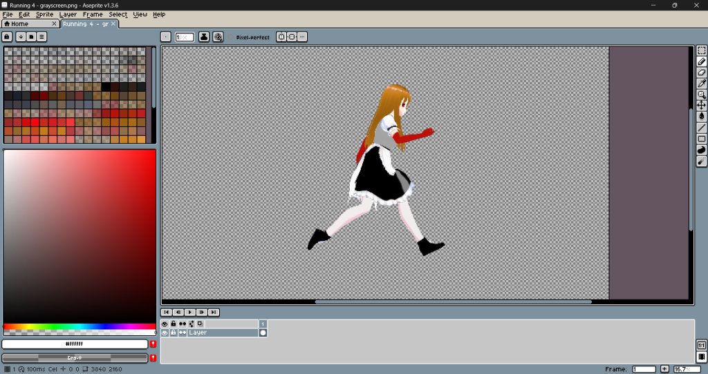 This involved finding how much I had to move by both their x and y axes the frames and then save them. I decided to do this on Aseprite even though it’s really used for pixel art since I could work on it without needing to go to the lab buildings to use photoshop.