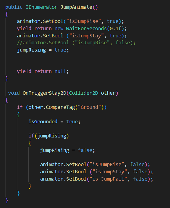 Bools were also set up in the animator so I could control what animations play within the movement script.