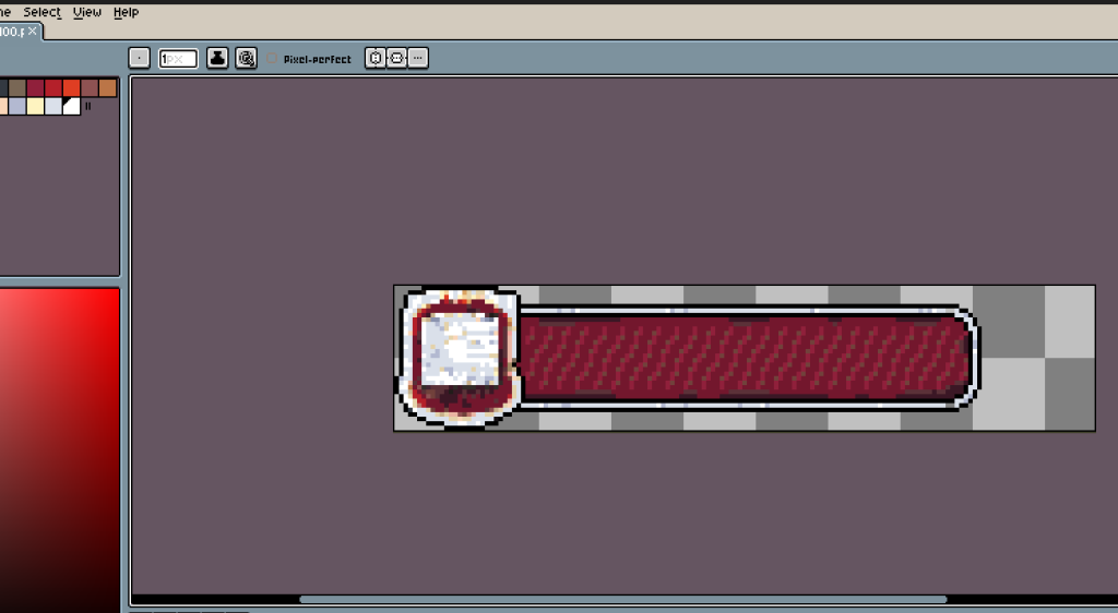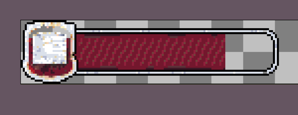 For the health bar I opened up Aeseprite and imported the blood bag item icon that I used for the blood upgrade item. After I added a bar to the right and edited it so it showed the health bar as full and then saving the file as healthBar_100.