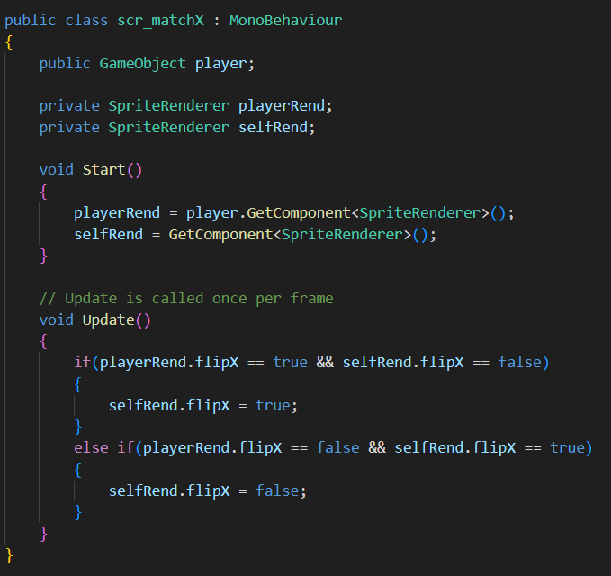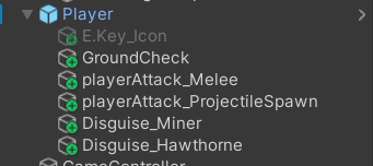 The disguises also have a script attached to them the will match the player’s flipX bool in the sprite render so that the disguises face the correct way.