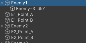 Before I had the enemy sprite set up I only used capsules for these enemies, but when I added the enemy animations the enemies will no longer move when patrolling. To fix this I kept the capsule sprites but turned them transparent and attached the new enemy gameObject on top of the old ones so that the new gameobject moves with the capsules. This also needed me to set up another match flipX script for the new gameObjects.