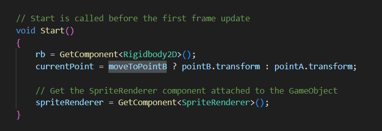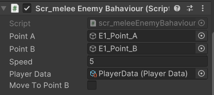 The original script from the video only made it so the enemy has to start on the B point, so the enemy always starts off moving left. To make it so that the enemy can start at the A point i made a public bool changes the starting target position.