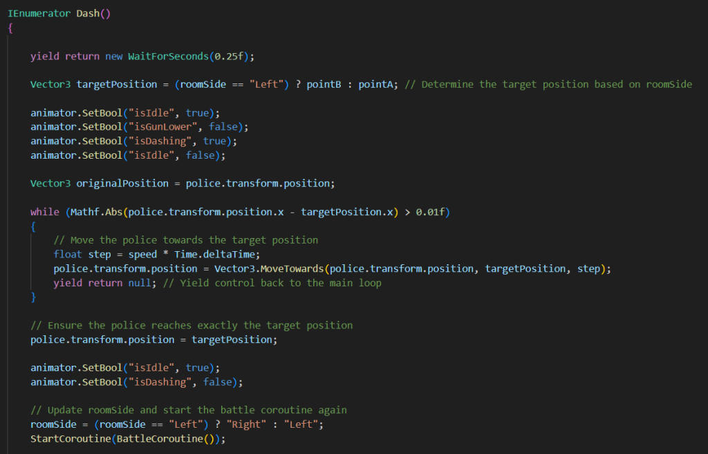 ChatGPT was primarily used for the dash mechanic after instead of moving the gameobject to the other room side at a set speed, he would just teleport to it location.