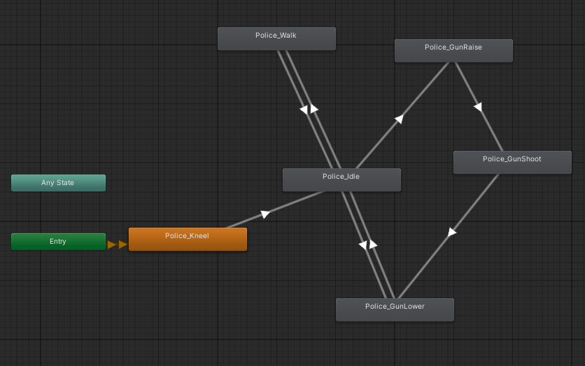 In terms of Jax’s animations I had to change the animator window so that idle is the default animation since the previous default animation was kneeling and since it was was used as a connecter for each of the animations, when switching animations a frame of kneeling would show.